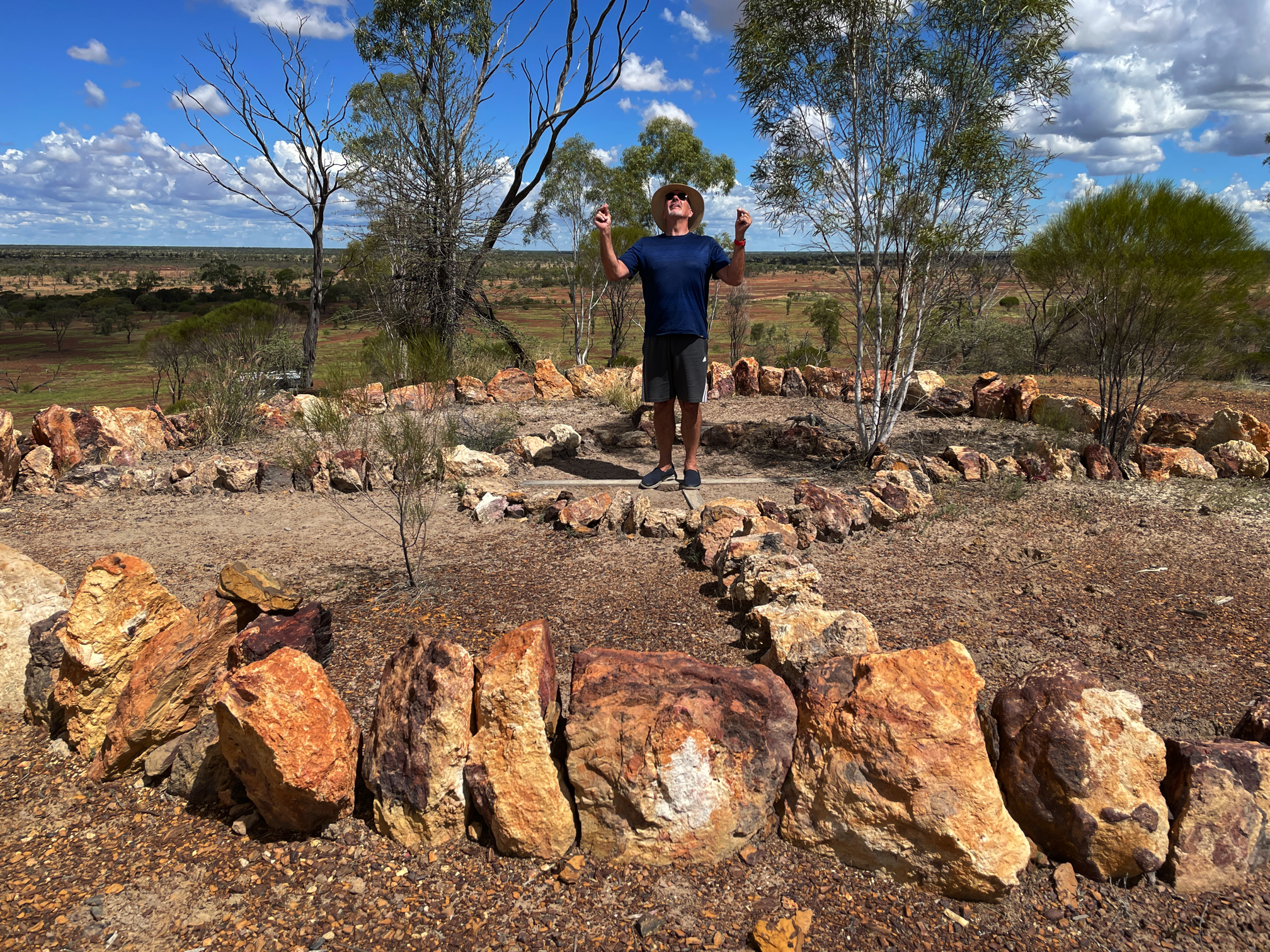 04_09_scupture_trail03 Published 12 June, 2021 at 2016 × 1512 in 04_09_scupture_trail03 ← Previous Next → Steve having a zen moment in the Healing Circle. Lake Dunn Sculptures