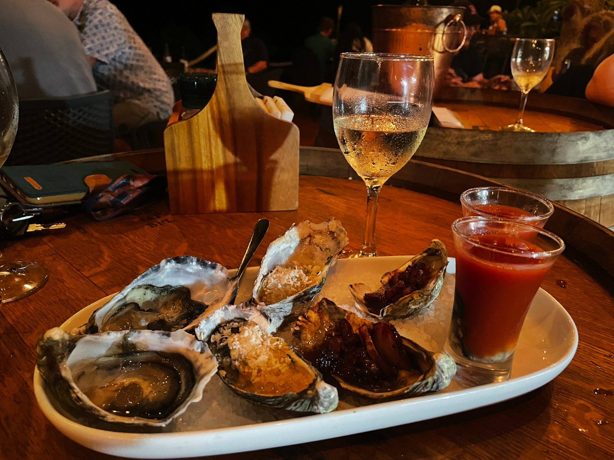 04_19_karumba02 Published 12 June, 2021 at 2016 × 1512 in 04_19_karumba02 ← Previous Next → Oysters four ways. Mmmmm. Happy me. End of the Road restaurant Karumba
